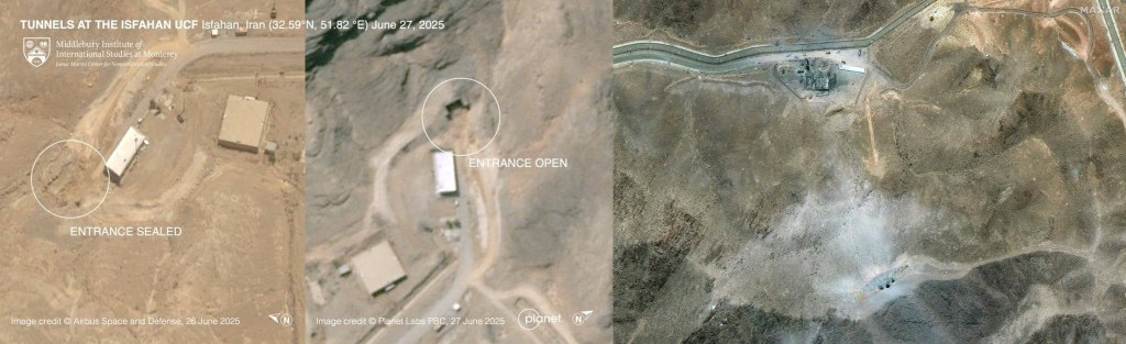 The Natanz and Isfahan sites suffered surface damage, but key facilities are below ground. Both sites were selected for geography and geology. The Karkas Mountains, where Natanz is located, is composed of granite and gneiss; hard igneous and metamorphic rocks. The geological formation is dense and resistant to penetration, providing solid foundations for the underground tunnels. The Isfahan site is under 45-90 meters of bedrock (limestone and dolomite). Fordow suffered no damage: “Fordow was built below a mountain to withstand nuclear strikes—as China did with ‘Project 816’.”